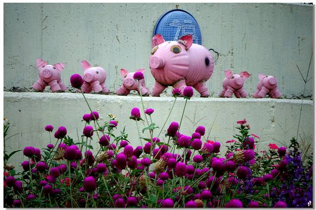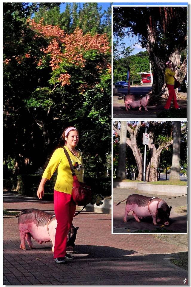 遛狗的见得太多了,遛猪的——还是头大猪,姐头一回见……
