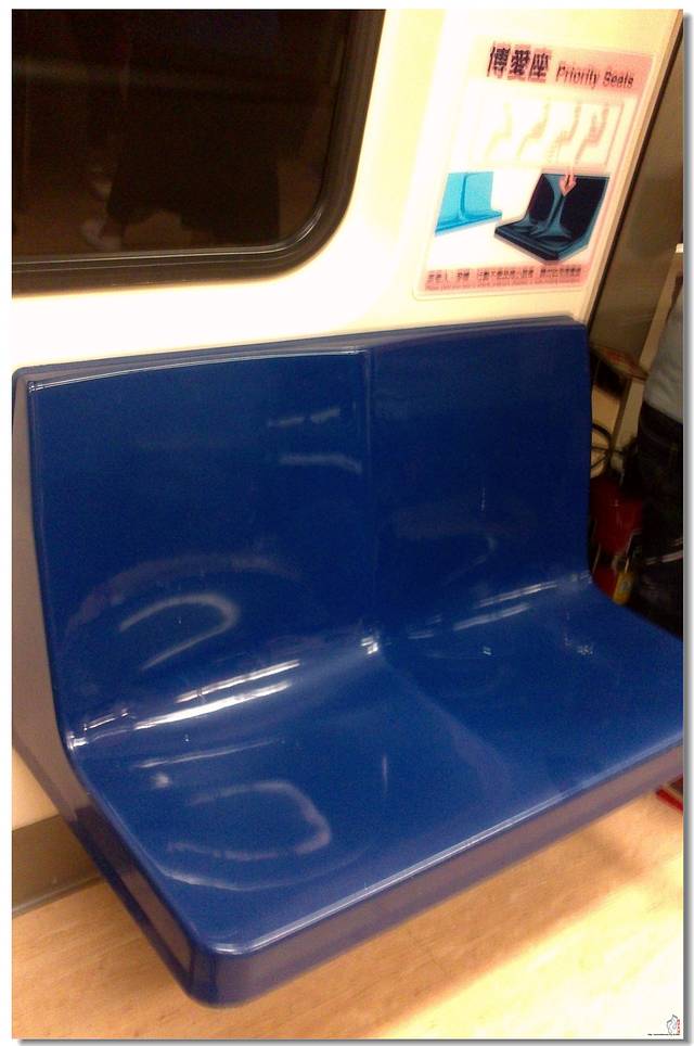 悄悄地告诉大陆来台湾 玩的盆友:但凡在地铁上见到这种蓝色的坐椅,就算你再苦再累再没位子坐,也不能和五种人抢这“博爱座位”,不然……全车所有鄙视的目光全部“刷”地射向你,让你无地自容,切记切记……