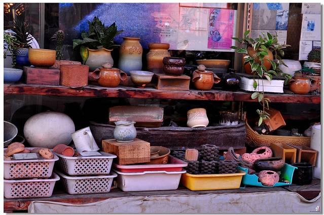 店面琳琅陈列古拙的陶瓷制品,空气中也弥漫着陶灰瓷土