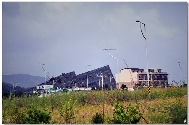这个三角形的黑乎乎建筑物,像一座地震后倒塌的屋子,它就这么随便地躺在马路边上