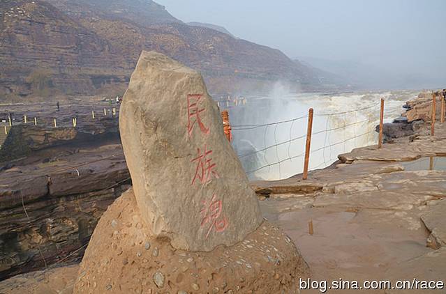 当彩虹出现在瀑布中的时候,更加映拖了黄河那奔流不息的精神和奋勇向前的力量,壶口瀑布的神韵,需要我们用眼睛去看,用耳朵去听,用心去体会。那些冲到身上的泥沙算什么,那些滴在身上的河水算什么,我只想站的里她更近一点,因为我愿接受黄河的洗礼,与黄河一同呼吸,共同前进!