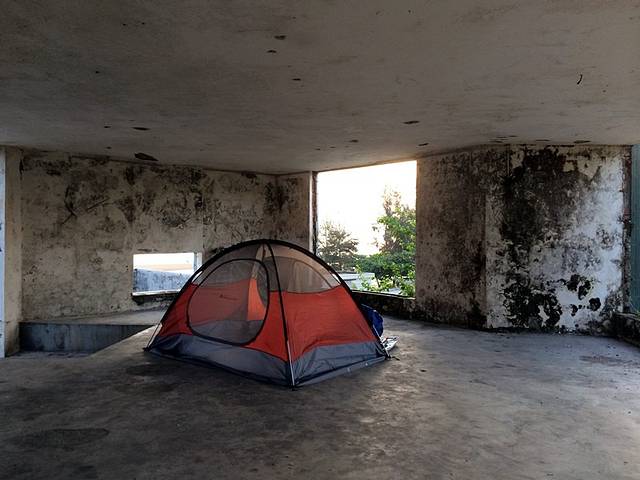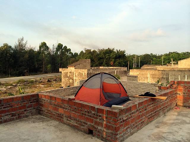 询问银滩入口处的小卖部,被允许在废弃的楼顶搭帐篷!