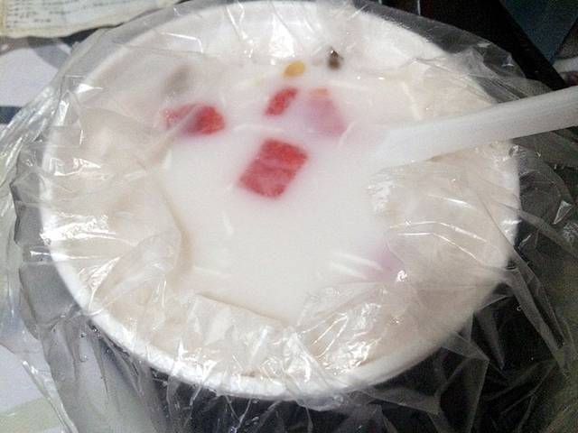 家乡的味道…骨子里还是河南人啊!红薯干稀饭,不知道多少年没吃到了!其实这个稀饭在河南很少有卖的,因为家家都会做,没有市场,而这里卖2元一碗…老板是俩小伙子,其中一个还加了我微信,老家是安徽亳州的…之后在旁边一家打着“开封包子”的店里买了包子和馒头,蛮正的,只是不便宜:包子2元,馒头1元