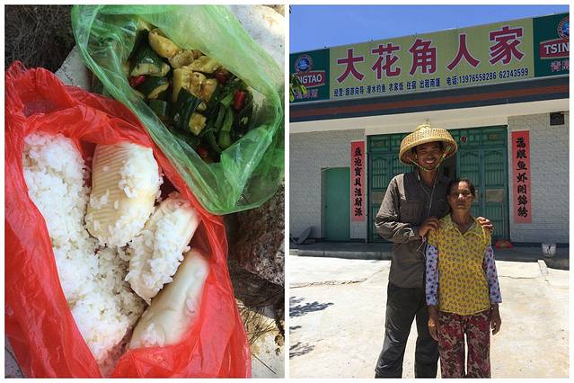 收获了东线的第一份感动:大花角的阿婆!她主动过来跟我聊天,后来在旁边部队里打包了饭菜拿给我!她提到自己活到103岁的母亲去世前把他们兄妹四个叫在一起嘱咐“要是有多余的饭菜就不可以让路过的人饿肚子,不可以嫌贫爱富…”。阿婆看管着大儿子盖起来的小院,每年接待些外地来的客人,经常有骑车的在她小院里露营…