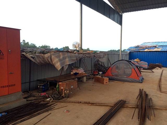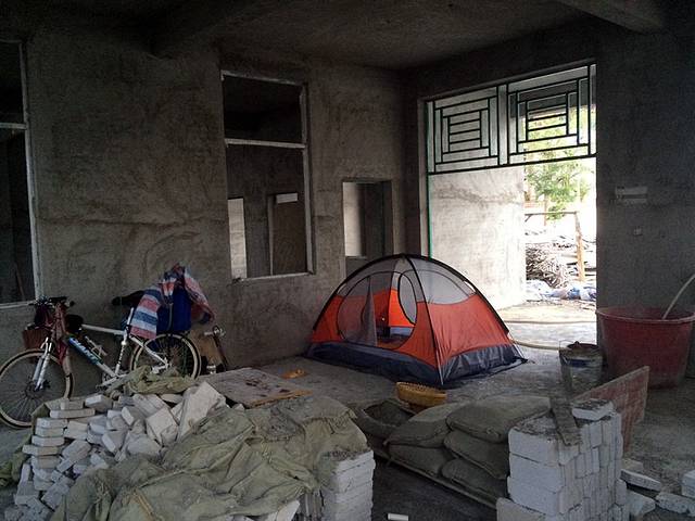 上省道701后爬了几个坡,又躺半天,沿着701走到头。地图上显示要过河,之前有人跟我说要摆渡,不过到了后才知道因为修高铁架了座临时的桥,所以摆渡取消了。过桥后已经天黑,跟中铁工地的老板沟通后被允许在院子里露营,负责看钢铁的李大叔是安徽蚌埠人,满院子几乎都是安徽人!洗了澡,睡觉
