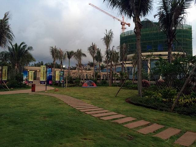 2014.05.25,行99.43公里,到达临高角,在一楼盘修建的公园草地露营