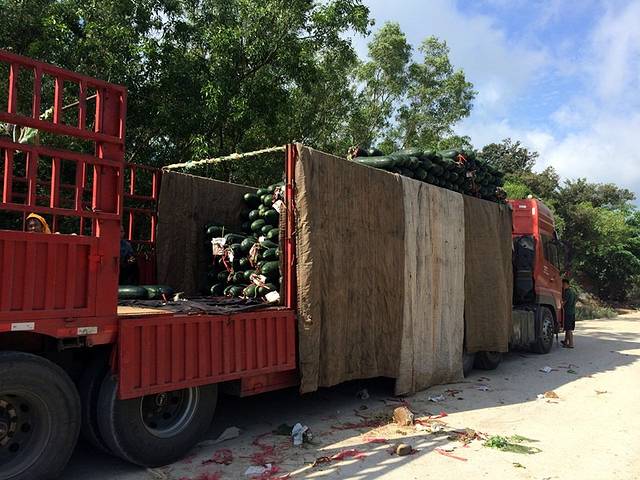 路上见很多装冬瓜的大货车,地里的冬瓜跟黄瓜一样架起来,所以才会通体黑皮吧