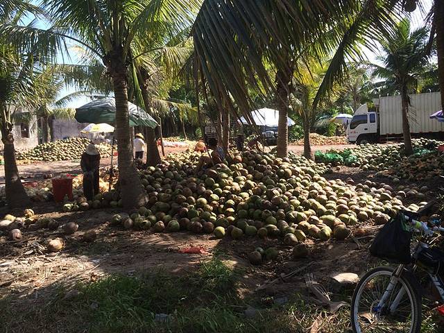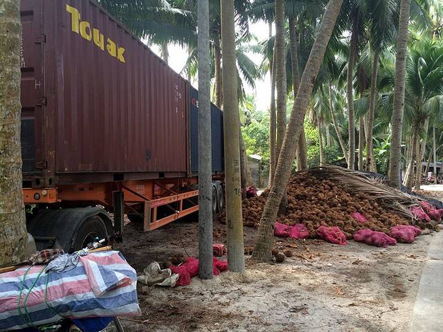 大货车从港口把从东南亚收来的椰子拉到这里,只取椰肉,做成椰粉出售,海南的椰子几乎不够中国人自己喝