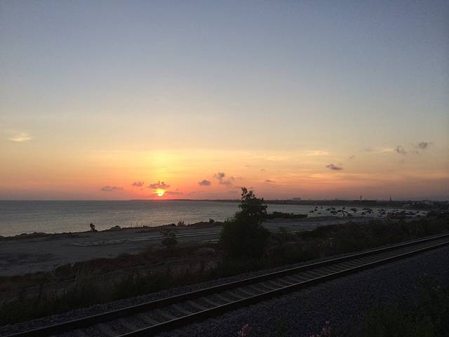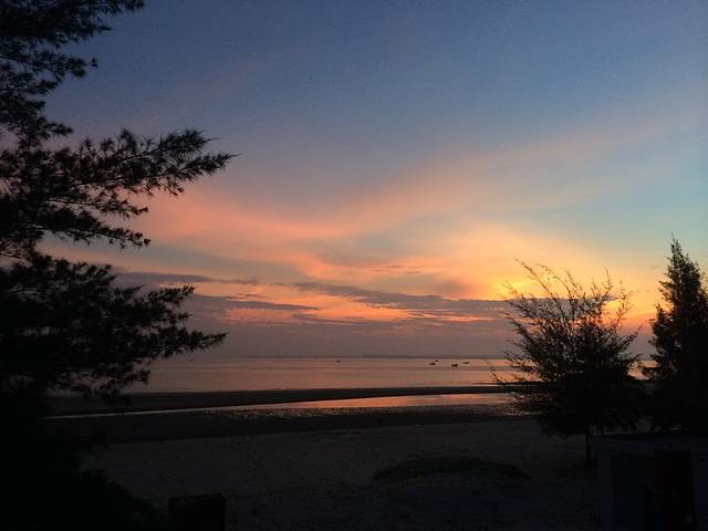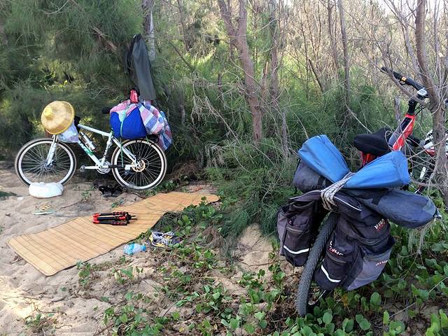 从杨浦大桥下来后一直到排浦镇,都是沿海的大道,距离海边30米左右,这条路特别推荐骑行,一路随时可以转去海边沙滩!走到这段路的尽头刚好看日落