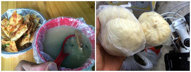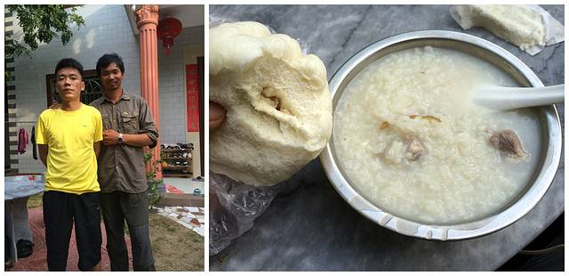 大哥家早上煮的排骨粥和买回的包子,聊了很多,也询问了下能不能去三沙市…最后大哥说要是他们本地人,跟船上人认识打个招呼就可以去,但是我不行…部队补给的船肯定不会让普通人乘坐,客船应该在海口发船…