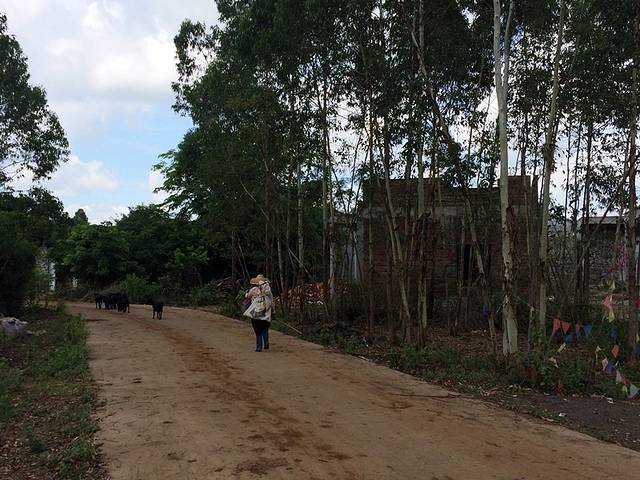 一大姐赶着几只黑羊,应该是回家吧;在这里休息时,一大哥跟我聊天,说起我家河南的,他说我们那边生活比他们好,因为他们这边一般家里都是孩子多,压力大..不过就我一路感觉,我家那边生活比不上这边啊,我家到现在还没有自来水,每个村子也没有海南这样气派的大门矗立。