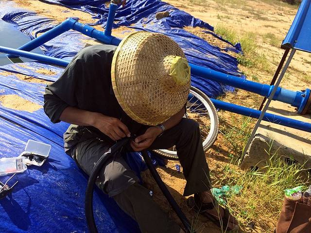 2014.05.27,行62.75公里,在洋浦千年古盐田逗留后继续走,路边村子一大哥家楼顶露营