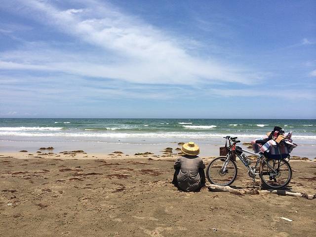 沿着海滩骑,难,速度只有8左右,海风把衣服吹的鼓起来,好像救生衣…