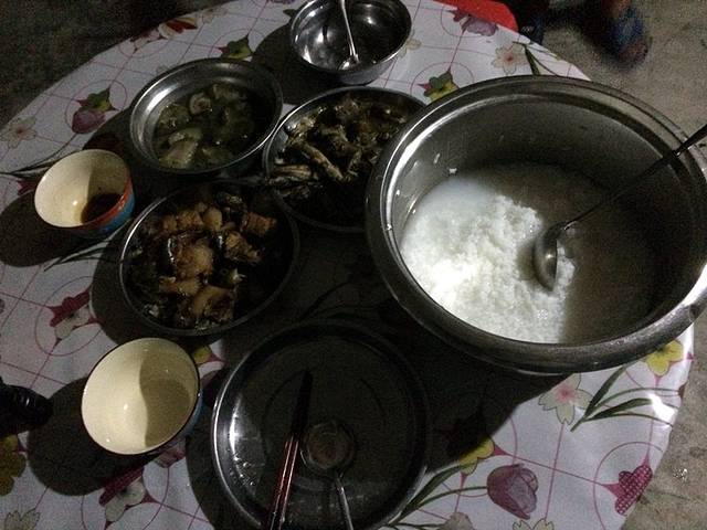 小伙伴跟我一起两天,才第一次吃到饭…一份15元,每人吃了3碗米。之后在莲花小学正在施工的楼里打地铺!