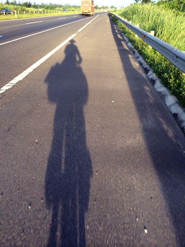 (图02) 进入高速路,像西走,早上的太阳把我的影子拉的很长