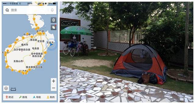 2014.06.05,行93.9公里,跟着百度地图导航赶夜路到东郊椰林,在地图上的“近处”找人家院子露营…第二天才知道导航错了,走了相反的方向!