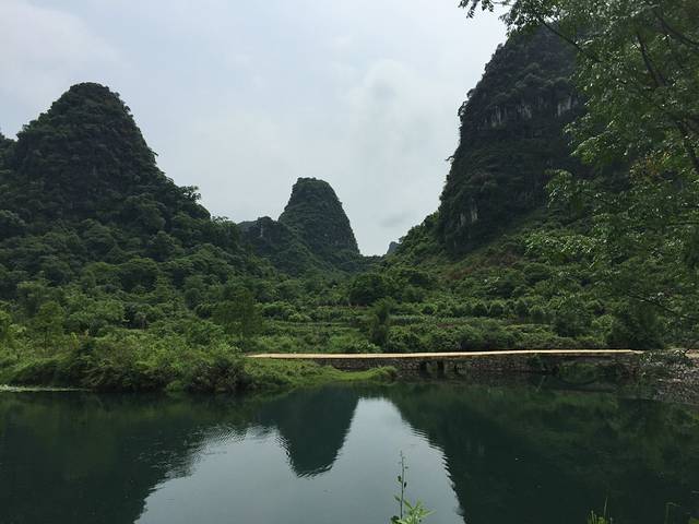 第二天早起 去十里画廊本来想坐车的 结果青旅的女店主推荐一定要骑车 我骑车了之后才发现 确实要骑车 如果坐车不能随时停车拍照 而且不是很累 景点之间都不是很远 拍了几张沿途风光 经过一个桥 那里的风景还不错