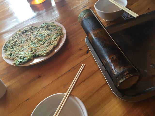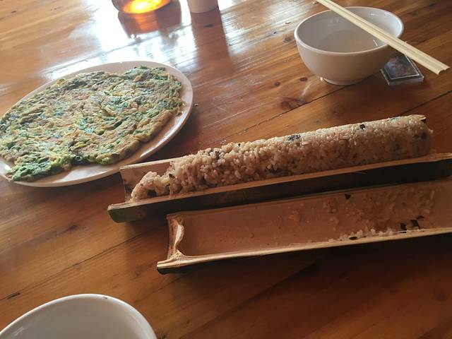环境还好 价钱也便宜 因为大家都选择山上等着看日出 所以山下的都很便宜 吃了这里的饭 竹筒饭 韭菜自己种的 鸡蛋自己养的土鸡下的 豆腐自己家做的