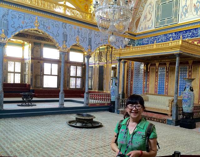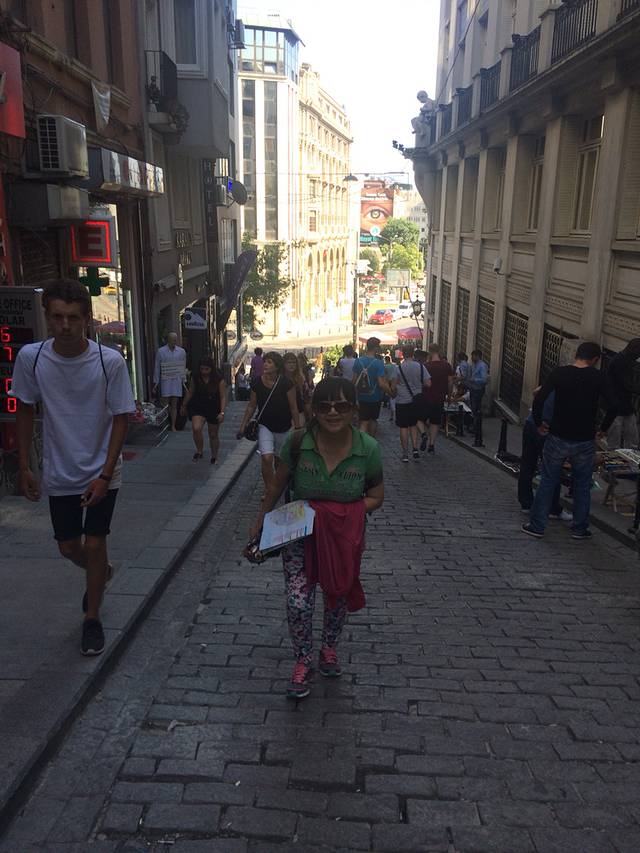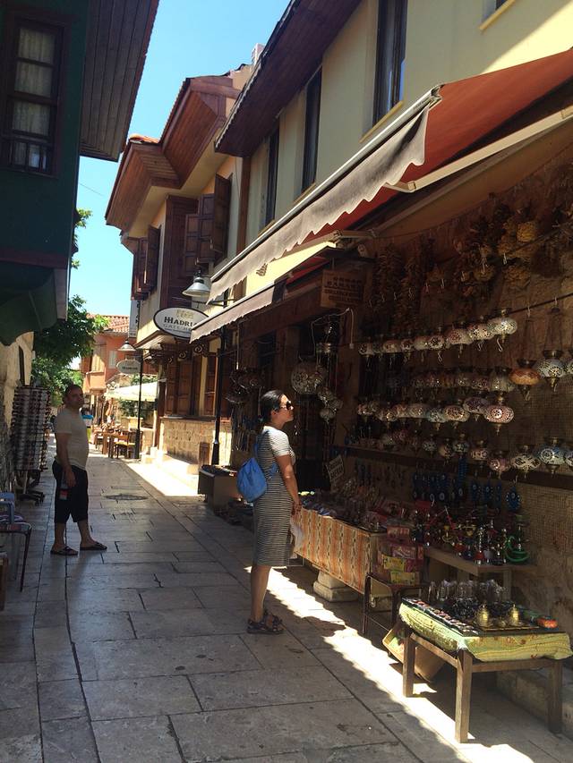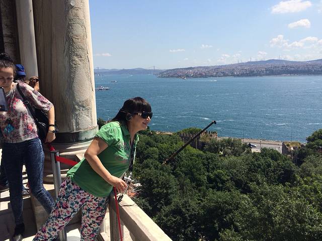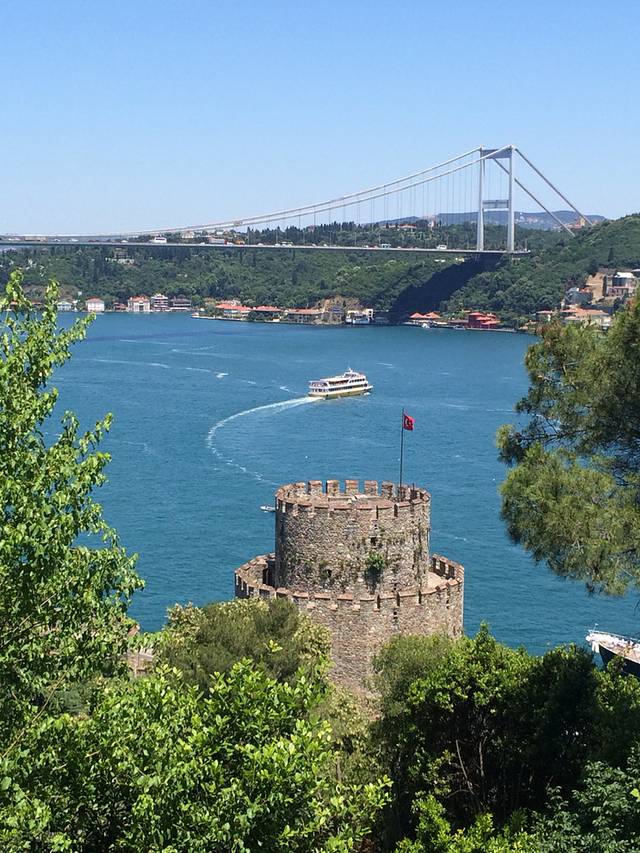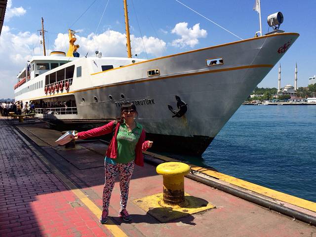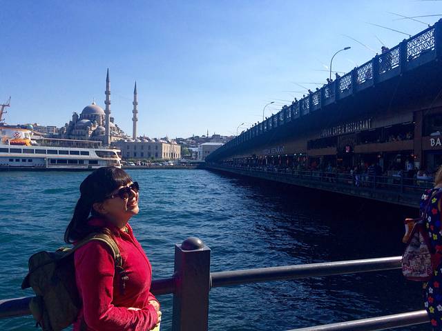 D2,继续伊斯坦布尔游。本次旅行是说走就走,拿着Lonely planet的土耳其书就奔向了欧亚分界线。第二天出门忘了带书,只模糊记得今天的计划是游老皇宫、坐船游亚洲、欧洲分界线海峡,然后步行穿过连接伊斯坦布尔新旧城池的大桥,然后去独立大街。从托普卡帕宫出来步行到Eminonu码头,看见一旅游信息门户,火速冲进去问船,告诉人家我们想从欧洲去亚洲然后再回到在欧洲的伊斯坦布尔,人家说有三艘船,一艘往返半小时,一艘往返四十分钟,一艘往返两个半小时。心想取中吧,选了四十分钟往返的,可同行的哥们发现这船压根没朝黑海方向开,坚持要重新穿越博斯普鲁斯海峡奔向黑海。坐在加拉塔大桥上的桥上餐厅,看着一串串的钓鱼线争吵着是否要去黑海,最终达成等晚上回宾馆有书了再讨论。今天争取逛完独立大街去博斯普鲁斯大桥走走看看。在塔克西姆广场问出租车司机,原来桥两端有军人守护,行人在无通行证的情况人只能坐在车里过桥,交通非常拥堵,只好取消了步行穿桥计划。回到蓝色清真寺,到处都是席地而坐的行人,原来昨天是伊斯兰教的斋月的第一天,难怪半夜都在诵经,从日出到日落教徒们禁食,大家在清真寺附近的布斋饭区域等着日落后领取斋饭。必须夸奖一位土耳其美女,帮助我们买船票,还送了我们一张交通卡,里面还有她的十里拉,帮我们完成了今天的公交行,谢谢土耳其美女!