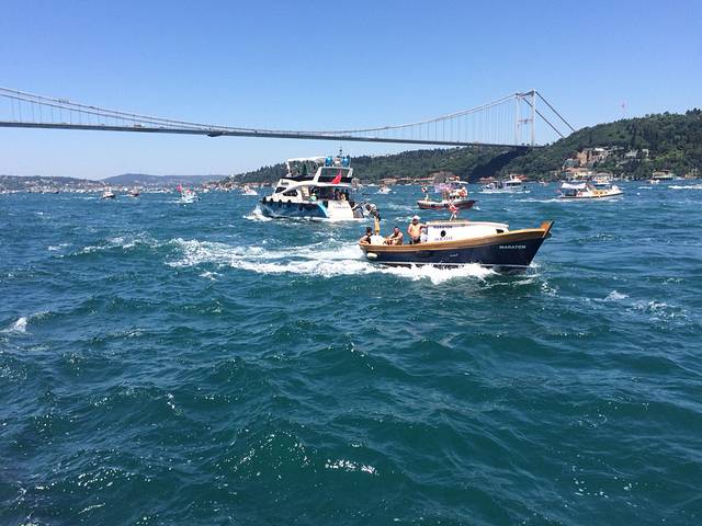 乘坐观光游船终于来到博斯普鲁斯大桥下