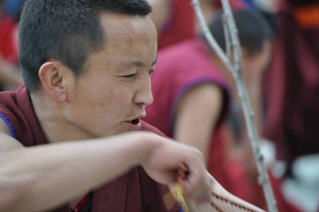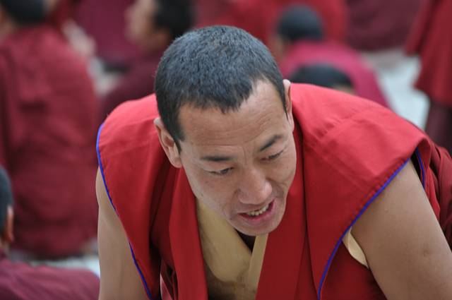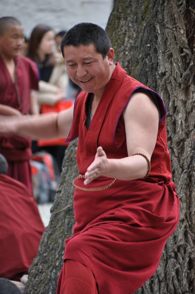 今天原计划是要去纳木错的,这个季节去可以看到她不一样的另一面,因为湖水还在冰冻期,会出现类似冰川的景观,也是很值得一看的!没想到天公不做美,还没等翻越那根拉山口就被关卡告之山上在下大雪道路已经封闭,站在蓝天白云大太阳底下的我们彻底傻眼,谁让这是西藏呢,十里不同天啊,一天过四季啊!最遗憾的就属杨妞了,第一次来就冲着大海一般的纳木错来的,老天爷偏偏跟她作对,唉,不过留一点遗憾也好,西藏,就是这么欲拒还迎,让你欲罢不能!去不了纳木错,我们调头赶回拉萨,时间刚刚好去色拉寺看辩经,哇咔咔~~这正是我想要的呀,哦耶!杨妞,表拍我,我错了……