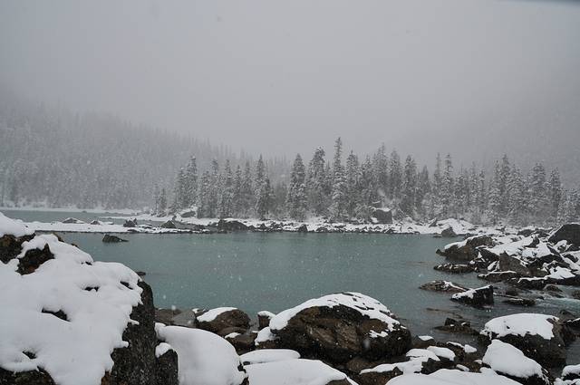 雪中的然乌湖下游