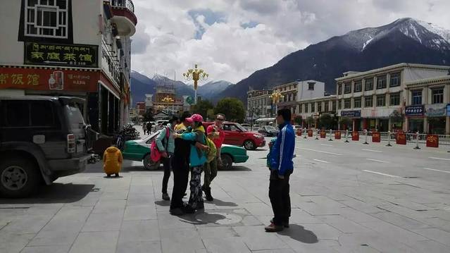 早上一觉睡到自然醒,还享受到小文师傅送早餐到房间的客房服务,真是太安逸啦!中午终于在酒店大堂遇到了另一位师傅——周帅接到的北京的小伙伴——杨妞和她老公,两位标准的80后,青春洋溢的面孔真是让我羡慕嫉妒恨~~~他们俩是灰机灰到西宁,又坐火车进藏,第一次来怕有高反也是正常,这不刚遇到,她老公就不太舒服,匆匆办理了入住就回房间休息去鸟……。说到这里,落下了另一位小伙伴,这个就更厉害了,90年出生的广西美女,我同一系统的同事,比我小了整整一轮啊啊啊!!叫我怎么活……!!她比我还要早到拉萨,只不过此时还在外面闲逛,跟两位帅哥师傅在房间里面等了一下,人就都凑齐了,下午就去羊湖,走起!