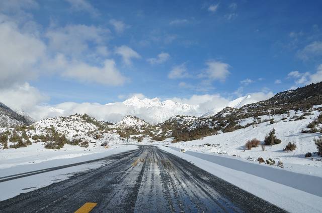 前一晚住在然乌镇外的酒店里,这里海拔高气温低,房间里没暖气冷得冻成狗,对我这个东北人着实是种折磨,还好床上有电褥子外加两床厚被子,睡在里面像冬眠有木有??意外惊喜是,早起天竟然雪后放晴,走吧,日落没拍成日出没希望,总要抓住最后的稻草!天气好了,米堆冰川也不再是擦肩的梦想!