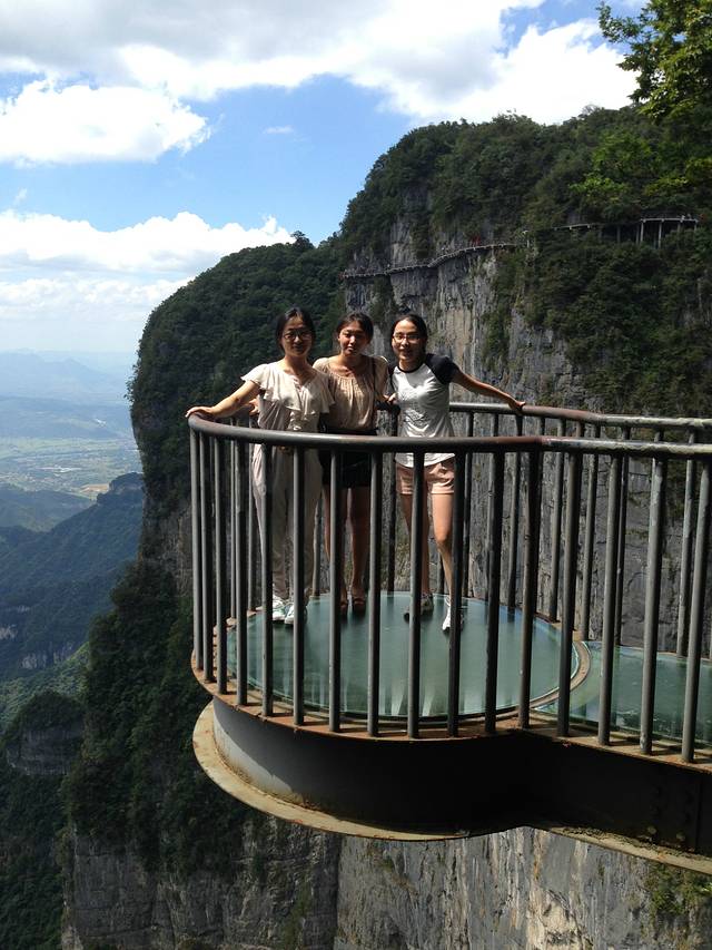 天门上有一段玻璃栈道,要另收费,但是很刺激,值得一试!这段小的也挺吓人的,玻璃下面就是万丈深渊啊!