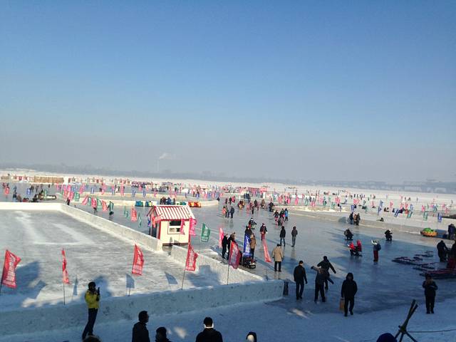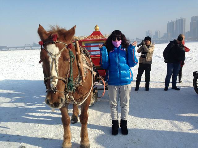 由于我从小就在大连长大,大连的江河比较好,顶多有个水库什么的,但是从来冬天都没有结实过,也从来没站在上面过,所以当我看到松花江,我这个心情,不言而喻,激动的快找不到边了