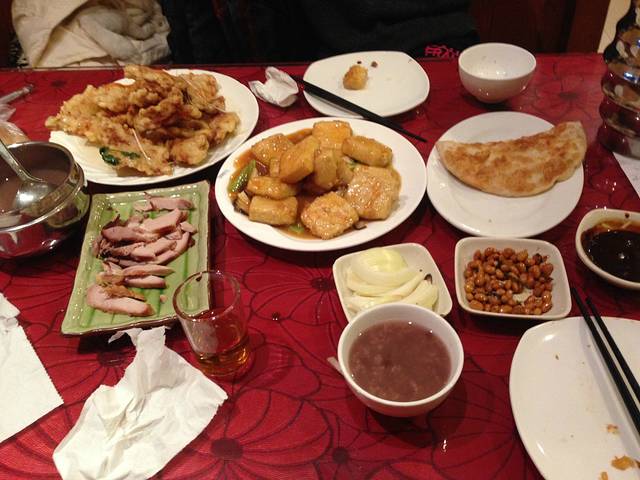 由于住的是青旅,很容易结交到朋友,晚上和一个北京的姐姐一起在毛毛熏肉大饼,吃的,地址在中央大街附近,可以百度,一个人肯定在吃上面有点亏,因为吃不了很多好吃的,多找几个就OK了,不过需要提醒,哈尔滨的菜普遍重口味,偏咸,
