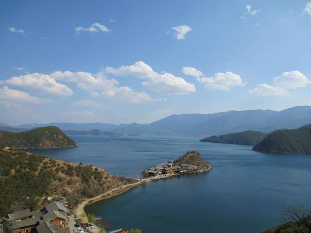 看到泸沽湖第一眼,感觉不枉坐了这么长的路了,很是惊艳。蓝天白云,蓝色的海水,清晰的空气。