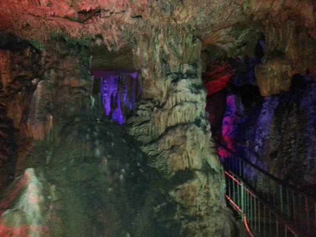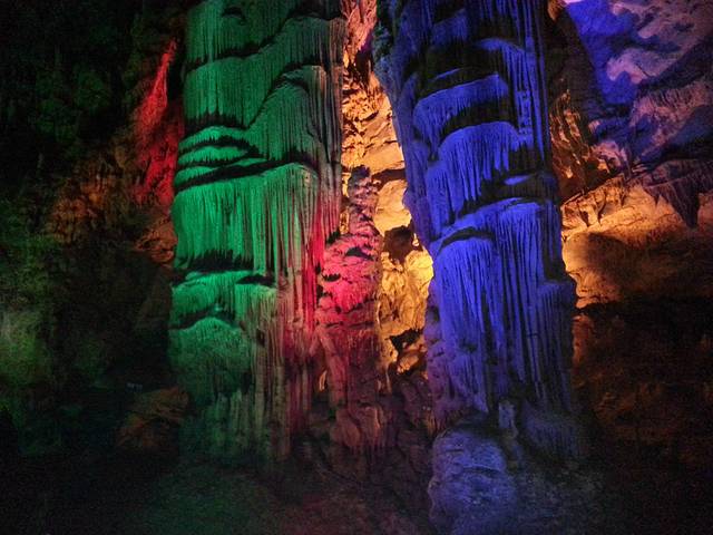 然而,当我进入了景区内我就后悔了,时间紧是一方面,还有就是尼玛去一个溶洞尽然得先爬小半个山,虽然景色挺好吧,坐船观景很休闲吧。可是我们没有时间啊……欲哭无泪,自己选择的路,就算哭着也要走下来。不过这种情绪在我进入溶洞内就慢慢消失了。总之就是两个字,值了。雁翔洞是天然行程的一个溶洞,加上人工修建的一条路,于是带给我们的就是这种绚丽景色。手机试着照了照,虽然看着还是可以,不过还是感觉没有这种身临其境感觉。放慢了脚步,放下了时间,不舍的走出去……