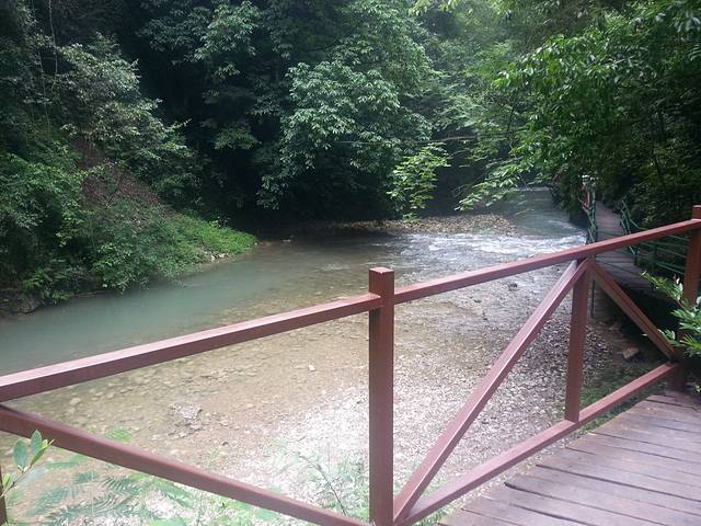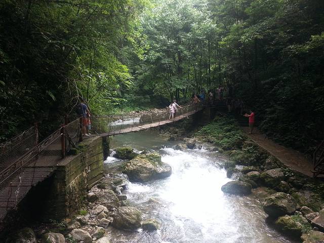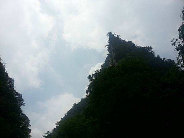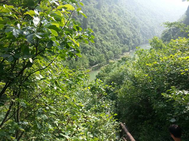 先是来到了中坝大峡谷,看见那个缓缓的峡谷漂流也是醉了,还不如划个船呢。漂流也就没有考虑,一百多块钱感觉不太值,直接进入景区看风景。也正是昨天的安康下了雨,今天的峡谷感觉比较凉爽。真的可谓青山绿水碧连天。这里的山也不知道是不是巴山,虽然不高,但是很陡很翘,人工痕迹感觉很少。李商隐的始终那巴山夜雨之景是不是就是在这里呢?当时那景色回事如何呢