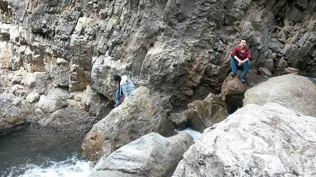 2、然后在偏岩下车后找面包车送到胜天湖的滴翠峡10元每人。我们是师傅人好直接从小路送到滴翠峡。按照正常的路线,要先送到胜天湖大坝,然后坐船去3号露营地(滴翠峡),船费要花300(貌似是一个船12个人)。我们就省了好多钱。