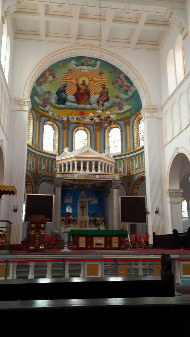 从栈桥坐公交车去劈柴院,中间会经过大教堂,被它的美丽吸引,我们下车先走回头去看看。门票5块钱,可以进去参观。第一次进教堂,感觉还是很奇妙的。
