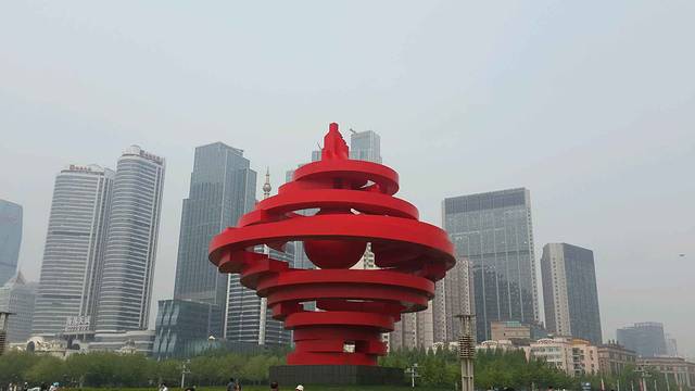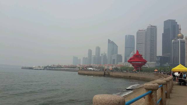 早上从奥帆中心出发,一路沿着海岸线暴走,往右边就是五四广场,远远就可以看到醒目的红色标志。