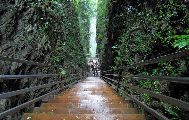 鬼古栈道:脚下是没有边际的绿野,成群的小鸟在峡谷中嬉戏,偶尔有老鹰从眼前掠过,闭上眼,挺着发麻的双腿,带着急促的心跳,伸开双臂,你就能得到一次最完美、最刺激、最贴近自然的SPA,您要知道这种在悬崖上赏风景一般都是非人类所能享受的。