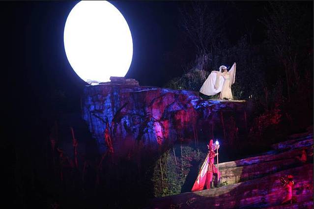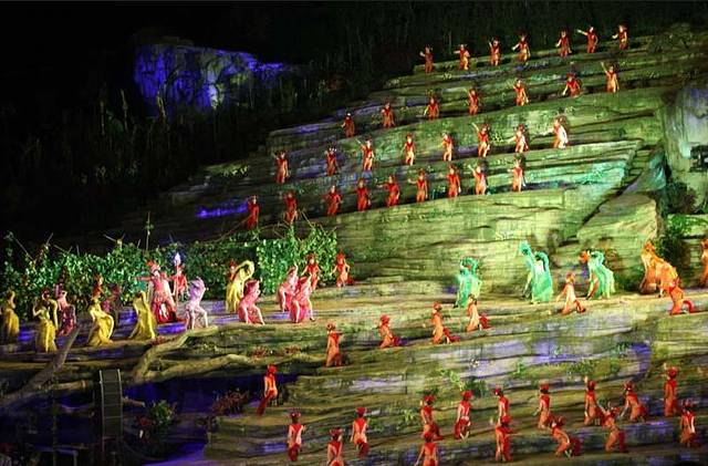 《天门狐仙》:位于张家界市区的大型山水实景音乐剧,以高山峡谷做舞台背景、使用顶尖科技舞美灯光音响、融入了张家界独特的民歌和土家的民俗,将古老的“刘海砍樵”传说在美丽的天门山下演绎的淋漓尽致。