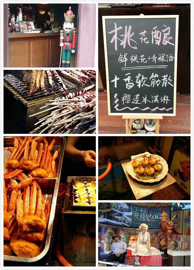 鼓浪屿小吃街 ,超大鱿鱼、黄金蟹、虾扯蛋、蜡像馆。那个保安是不是很像真人?