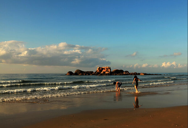 我光着脚丫拎着鞋,慢慢地走入石梅湾,感受脚下让阳光灼得微烫的沙滩,那软是会把人软得连心都酥麻麻的!