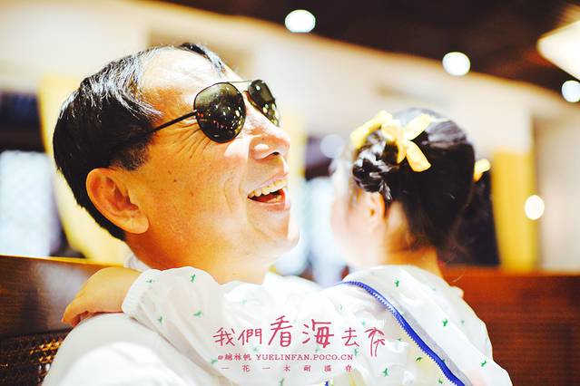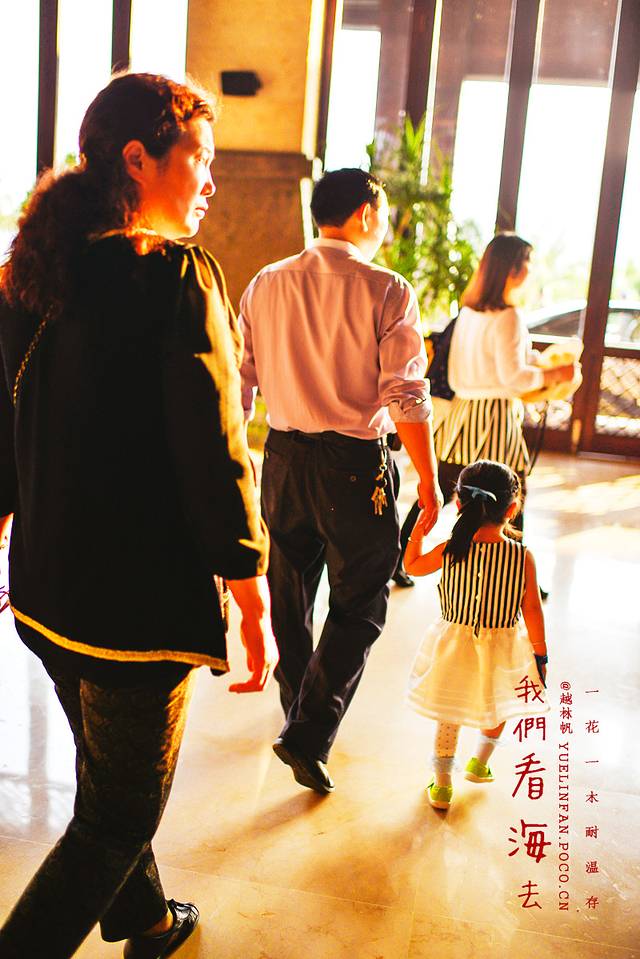 ▲吃罢丰盛的自助早餐,涵小妞又一个猛子扑到姥爷怀里,求抱抱再去看大海呀~