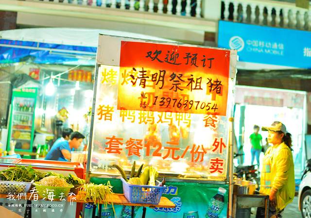 ▲回到居住地附近的渔村,摊档热络,市井风味浓浓,“清明祭祖猪”,这样的摊档透露出浓浓的传统气息。