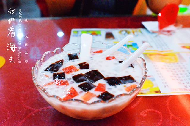 ▲和我们这里的“雪花酪”做法很像,不同的是把果汁换成椰汁,配料有红豆、绿豆、龟苓膏、芋圆等多种。