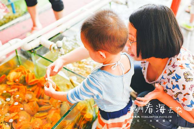 ▲拿起一只让涵小妞摸摸,可能是被大大的蟹钳吓住了,一直往妈妈怀里钻。别怕别怕,妈妈在~