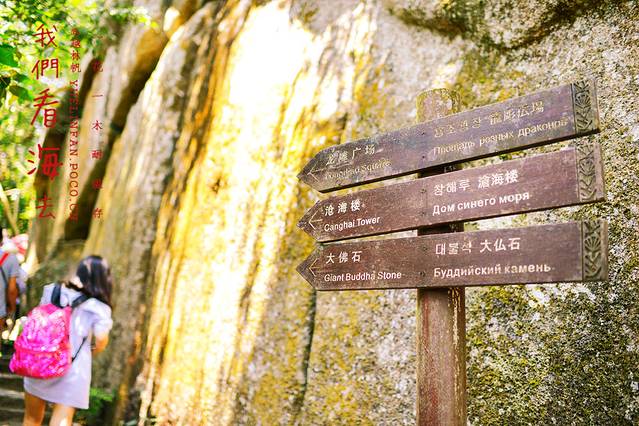 ▲沿着热带森林景观的道路指引牌走到大佛石。从下向上仰望,其巨石形状酷似正在闭目打座的弥勒佛。
