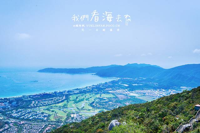 ▲走着走着看到了亚龙湾的全貌。雄浑壮阔,海天一色。在几十年前,这里还是无人开垦的荒地,后来风水被相中,身价倍增,沿岸都建成了五星级酒店。