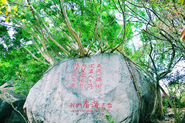 ▲天涯海角和大小洞天的景色类型有些相似,也是以沙、海、石、林为主。海湾沙滩上大小百块石耸立,天涯石、海角石、日月石和南天一柱分列其间,峥嵘茂立,蔚为壮观。