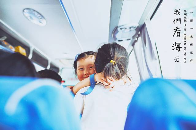 ▲结束一天行程,跟着大巴回家去喽~涵小妞和后座的妹妹义结金兰,一路上抱抱不停。