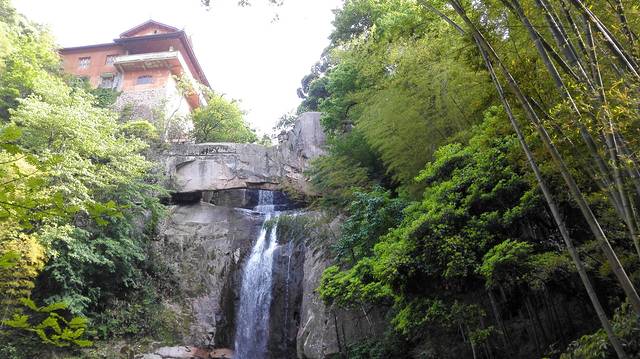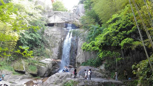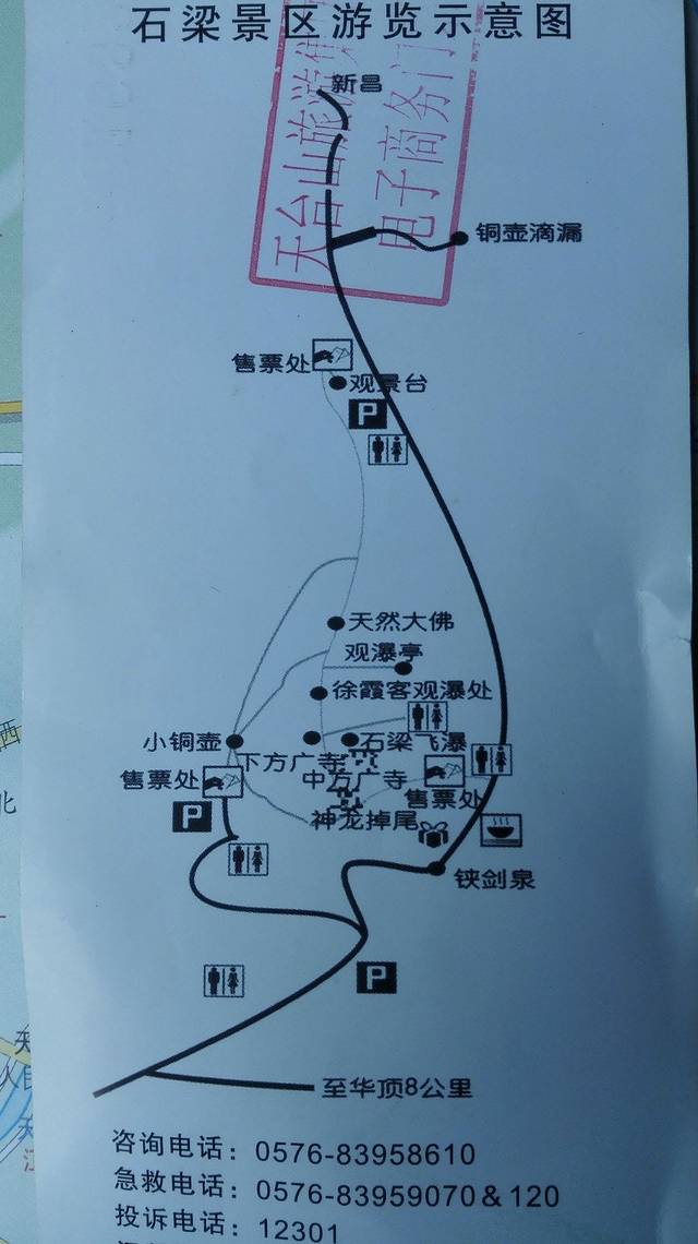 石梁景区较大,在天台山山门处,本来要向北的,因为车流量大被禁止通行了,只能绕左边道路过去。不去国清寺的话,直接向东北方向沿山路前行。